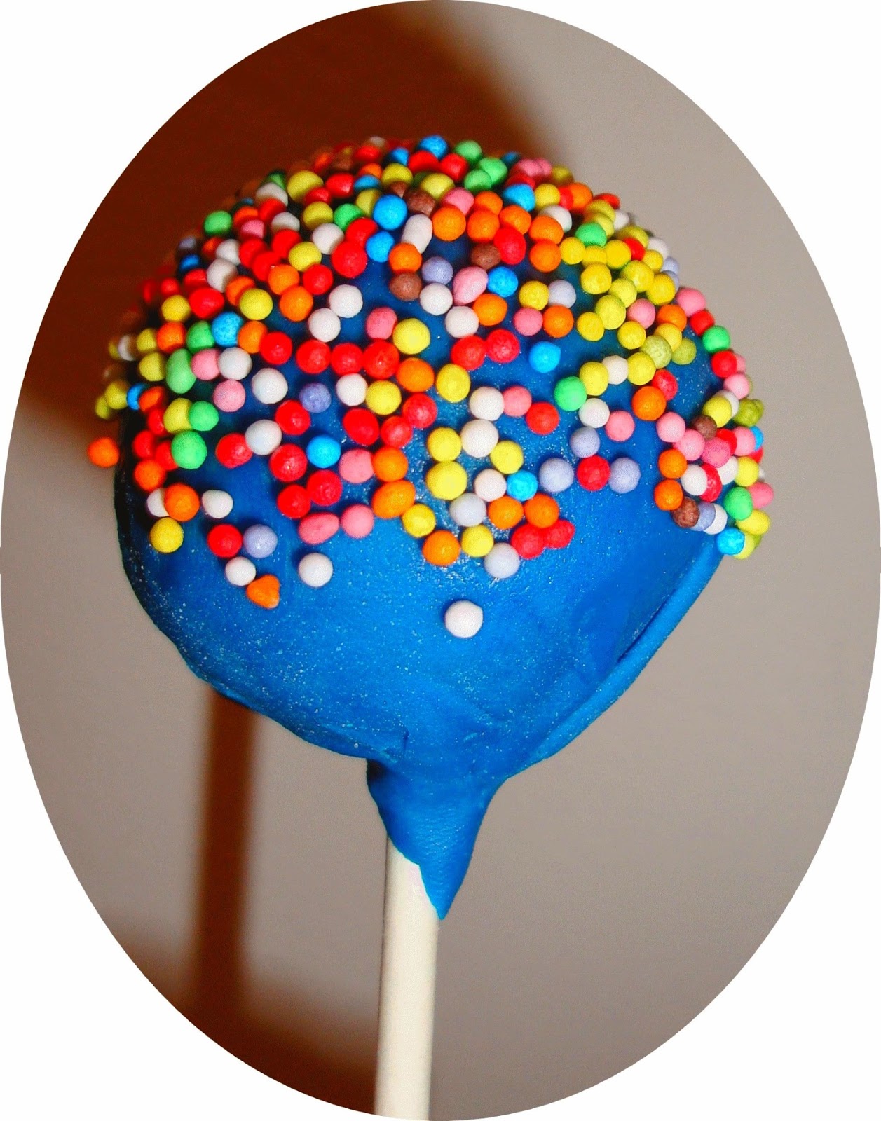 Trempez le cake pop dans le glaçage sucré et recouvrez de décorations sucrées. Piquer votre cake pop sur un support et laissez prendre au frais.