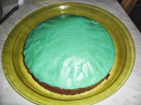 Réaliser 500 g de pâte à sucre express à la menthe et étaler cette pâte à sucre à la forme de votre gâteau.