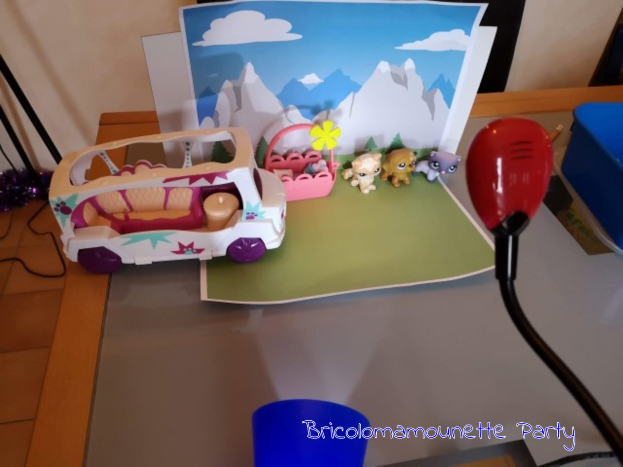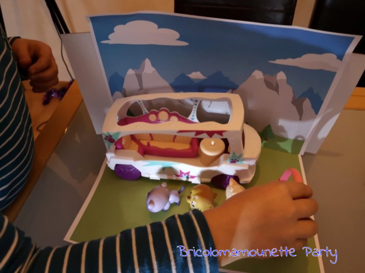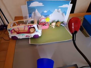 Nous avons mis en place le décor en l'imprimant directement depuis le CD d'installation. Puis nous avons utilisé une lampe de poche pour l'éclairage.J'ai laissé une totale liberté à bibou et bibette et je dois avouer qu'il se sont approprié l'outil très facilement. Ils ont réussi à faire un petit film en une après-midi sur un voyage de Pet Shop!